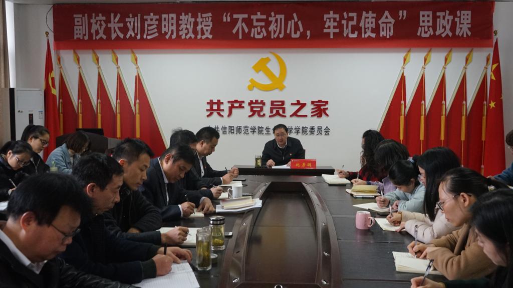 11月21日,根据学校“不忘初心、牢记使命”主题教育的工作安排,副校长刘彦明在生科楼412会议室,为304永利集团官网入口师生上了一堂题为“上好新时代思政课,培养合格人才”的思政课。学院领导班子成员、辅导员、党支部书记和部分师生代表聆听了思政课。